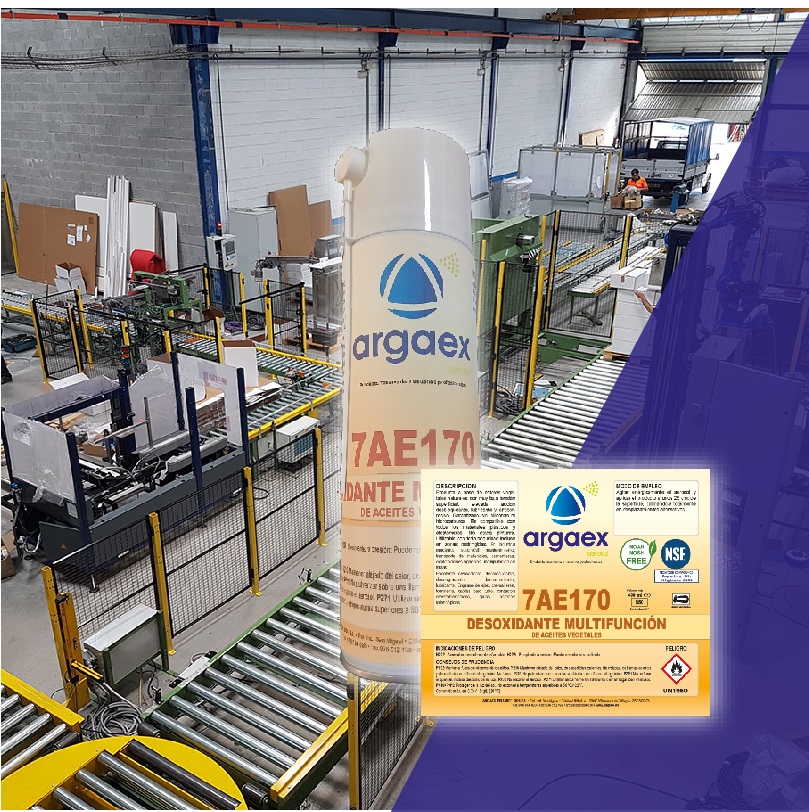 7AE170 es una producto de elevada acción desbloqueante, lubricante y anticorrosiva con un alto efecto penetrante. Neutro, no irritante. Formulado a base de ésteres vegetales naturales, con muy baja tensión superficial. Garantizado sin silicona, ácido ortofosfórico o disolventes clorados. Producto contacto alimentario autorizado H1 por INS. Excelente desoxidante, desbloqueante, desengrasante, deshumectante, lubricante. Elimina los hidrocarburos ligeros o pesados, gomas o tintas. No tienen reacción fotoquímica. Es compatible con todos los materiales plásticos y elastómeros. No ataca a la pintura. Es utilizable con toda seguridad incluso en zonas restringidas. No tiene ninguna obligación de almacenaje particular. Contiene el 98% de materia activa en el aerosol. SIN MOAH/MOSH.