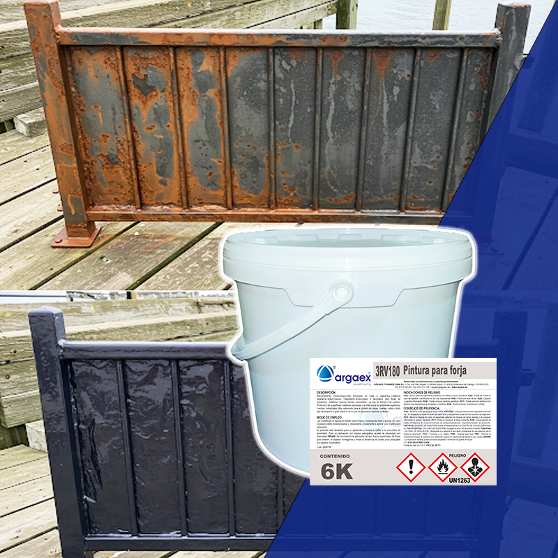 3RV180 es un recubrimiento monocomponente formulado en base a resinas alquídicas y pigmentos de óxido hierro micáceo para la decoración y protección de metales en el exterior. Facilidad de aplicación, excelente viscosidad y brochabilidad que proporcionan muy buenos acabados tipo hierro fundido forja. Gran resistencia a la oxidación por sus pigmentos de elevada laminaridad debido al efecto barrera que ejercen contra la penetración de la humedad. Excepcional adherencia sobre sustratos metálicos: hierro, acero laminado, galvanizado, protegiéndolos de la humedad y aire atmosférico. Magníficas propiedades mecánicas, que imparte a las piezas tratadas, dada su elasticidad, dureza, adherencia, resistencia a la oxidación, al desgaste y a la intemperie.